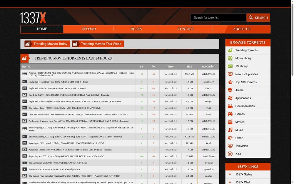 - 详细的电影信息: 每个电影条目都包含上传者、文件大小、种子数量等详细信息,帮助用户做出明智的下载选择。