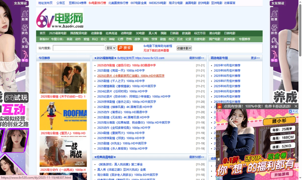 经典旧版主域名:https://www.hao6v.com/ (最稳定、资源最全的版本) 备用/镜像域名:https://www.hao6v.tv/、https://hao6v.cc/ 等(hao6v 系列经常互跳) 新版域名(界面更现代):https://www.66s6.cc/、https://www.xb6v.com/、https://www.i6v.tv/ 等 如果打不开:这些老牌下载站域名经常被运营商屏蔽,建议使用手机流量、换DNS、加速器,或直接搜索“6v电影网最新地址”找发布页/导航站。
