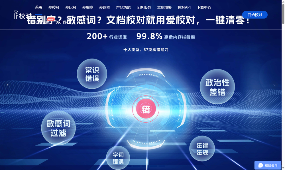 爱校对源于清华大学人机交互实验室的技术成果,利用深度学习在自然语言处理领域的创新能力,致力于构建精准度更高、功能更强的文字处理解决方案。提供智能校对、ai写作和网站巡检三大特色服务,旨在为企事业单位的文字工作者带来高效的写作和校对体验,降低写作的难度,提高校对效率和准确率。
