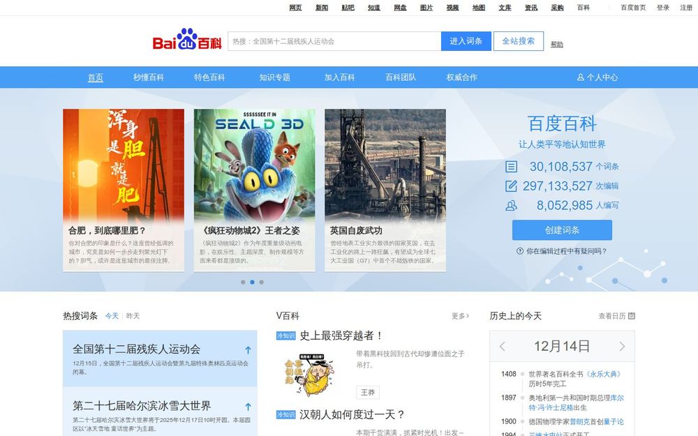 百度百科是由百度公司运营的中文在线百科全书,采用“众人参与、协作编辑、权威把关”的模式,面向普通用户、学者和机构开放内容创作与编辑权限。平台目标是“让人类平等地认知世界”,既包容泛知识普及,也兼顾专业性与权威性,覆盖历史、科学、艺术、地理、人物、企业等海量条目与专题内容。