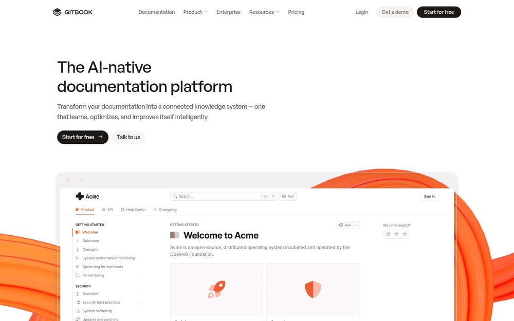 GitBook 是一个面向团队与企业的文档与知识管理平台,强调“内嵌 AI”的文档体验。它不仅用于撰写和发布传统的产品文档、API 文档与帮助中心,还把这些内容转化为一个不断演进的“连接知识层”,能够与产品、支持票据、代码仓库和外部数据源联动,帮助团队保持文档的准确性与可发现性。