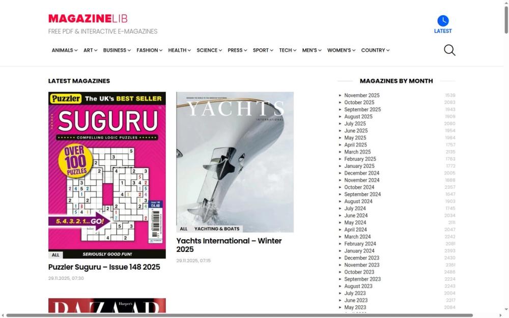 Magazinelib 是一个专注于提供免费 PDF 和互动电子杂志的平台,致力于为用户提供丰富的阅读体验。用户可以在这里找到来自世界各地的杂志,涵盖多个领域,包括时尚、科技、生活方式等。
