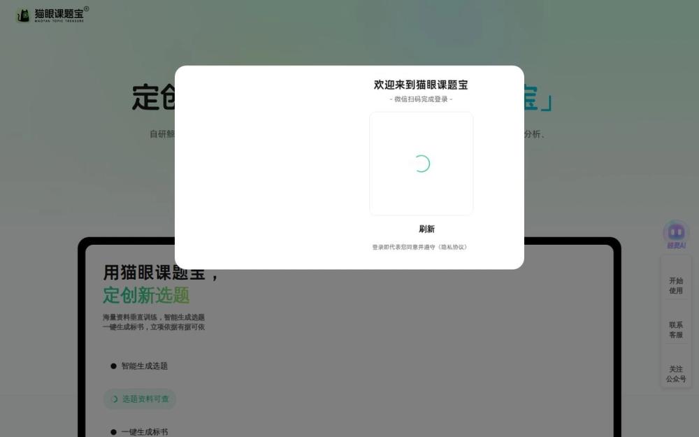 猫眼课题宝是一款以大数据与AI为驱动的科研选题与立项辅助平台。依托自研的鲸灵AI科研大模型,并基于海量数据(879万+基金、1.8亿+文献)进行垂直训练,平台旨在为科研工作者、课题组和科研管理部门提供从快速定题到标书生成、基金与文献分析、订阅追踪与课程培训的一站式服务。