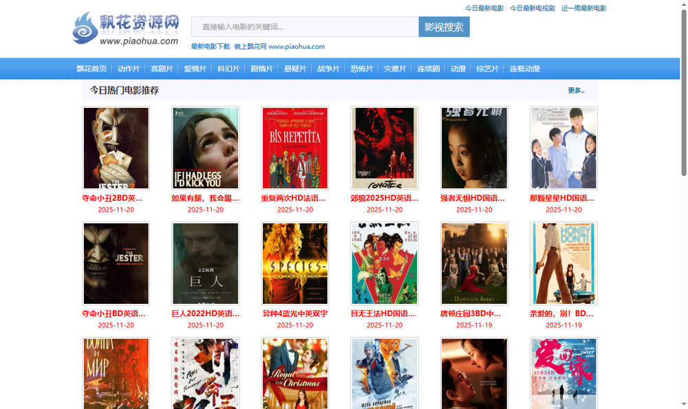 如果打不开:尝试换浏览器或关闭广告拦截(部分地区可能需要科学上网) 域名非常稳定,几乎没换过,但偶尔会被短期屏蔽 想在线观看而不是下载?可以去这些模仿站: https://piaohuayy.com/ https://www.piaohuaz.com/