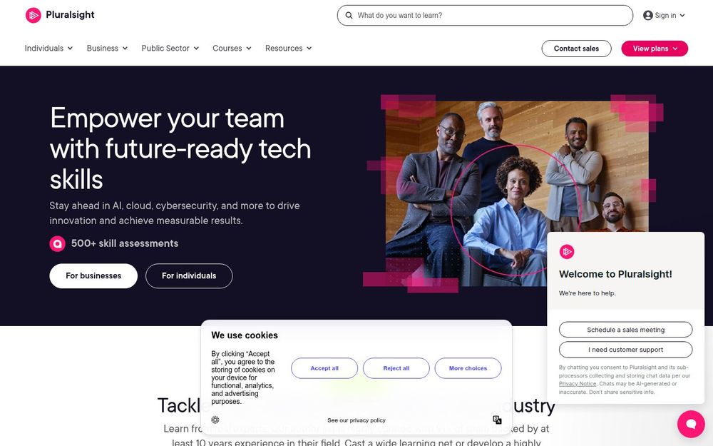 Pluralsight 是一家面向技术人群与组织的在线学习与技能发展平台,专注于帮助个人与企业在 AI、云、网络安全、软件开发、数据与 IT 运维等关键技术领域提升能力。平台集课程库、学习路径、动手实验室、技能评估与企业级分析于一体,支持个人订阅与团队/企业采购,并提供面向公共部门的定制解决方案。