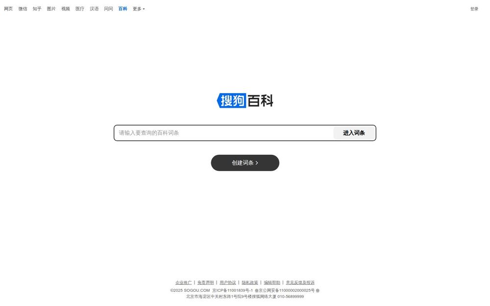 搜狗百科是搜狗(SOGOU)推出的在线百科全书性平台,面向普通用户、学术爱好者与企业单位,提供词条检索、浏览与创建编辑服务。页面可见“创建词条”入口,并提供包括编辑帮助、用户协议、隐私政策在内的支持与规范性文档,此外还设置了意见反馈与投诉渠道,便于用户参与平台治理与内容改进。