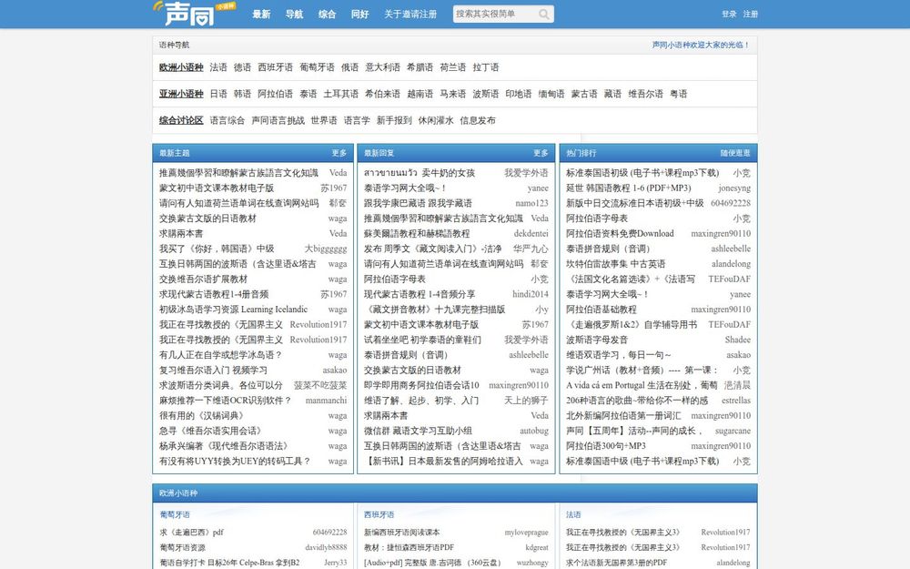 声同小语种(Somdom)是一个面向中文用户、专注于“小语种”学习与交流的社区论坛。站点将语言按地域与类别进行细分,提供从欧洲小语种到亚洲小语种,再到综合讨论区和热门话题的完整导航,便于不同学习阶段与需求的用户查找资料与参与讨论。页面同步展示最新主题、最新回复、热门排行与活跃会员,强调共享与互助的社区氛围。