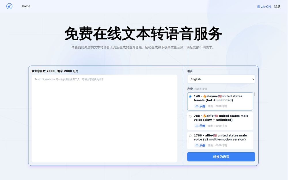 我们的文本转语音服务不仅提供高质量的音频合成,还具备高性价比,用户无需雇佣配音演员即可高效生成语音内容。无论是用于广告、教育还是个人项目,我们的工具都能满足您的需求。